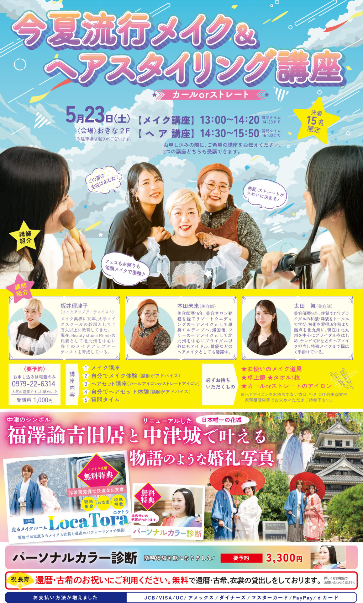 北九州を中心に活躍するメイクアップアーティストと美容師がメイクとヘアアイロンの取り扱いを伝授します♪